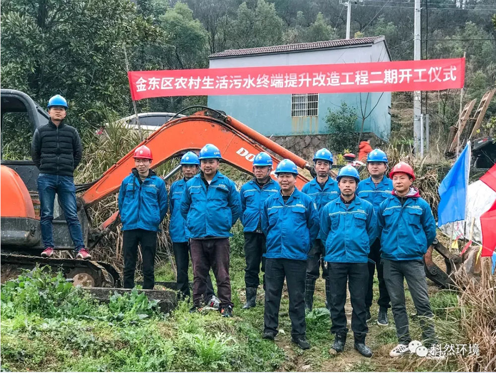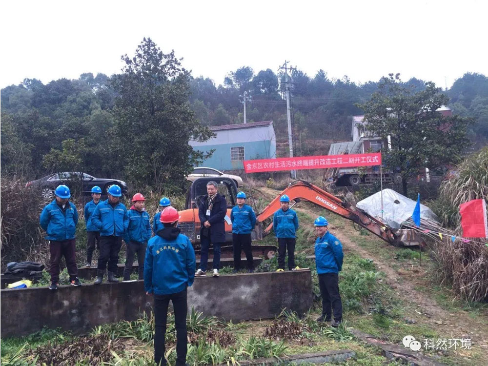 2019年的2月28日上午,由浙江科然環(huán)境科技股份有限公司承建的金東區(qū)農(nóng)村生活污水終端提升改造工程二期,在嚴塢村舉行了開工儀式。